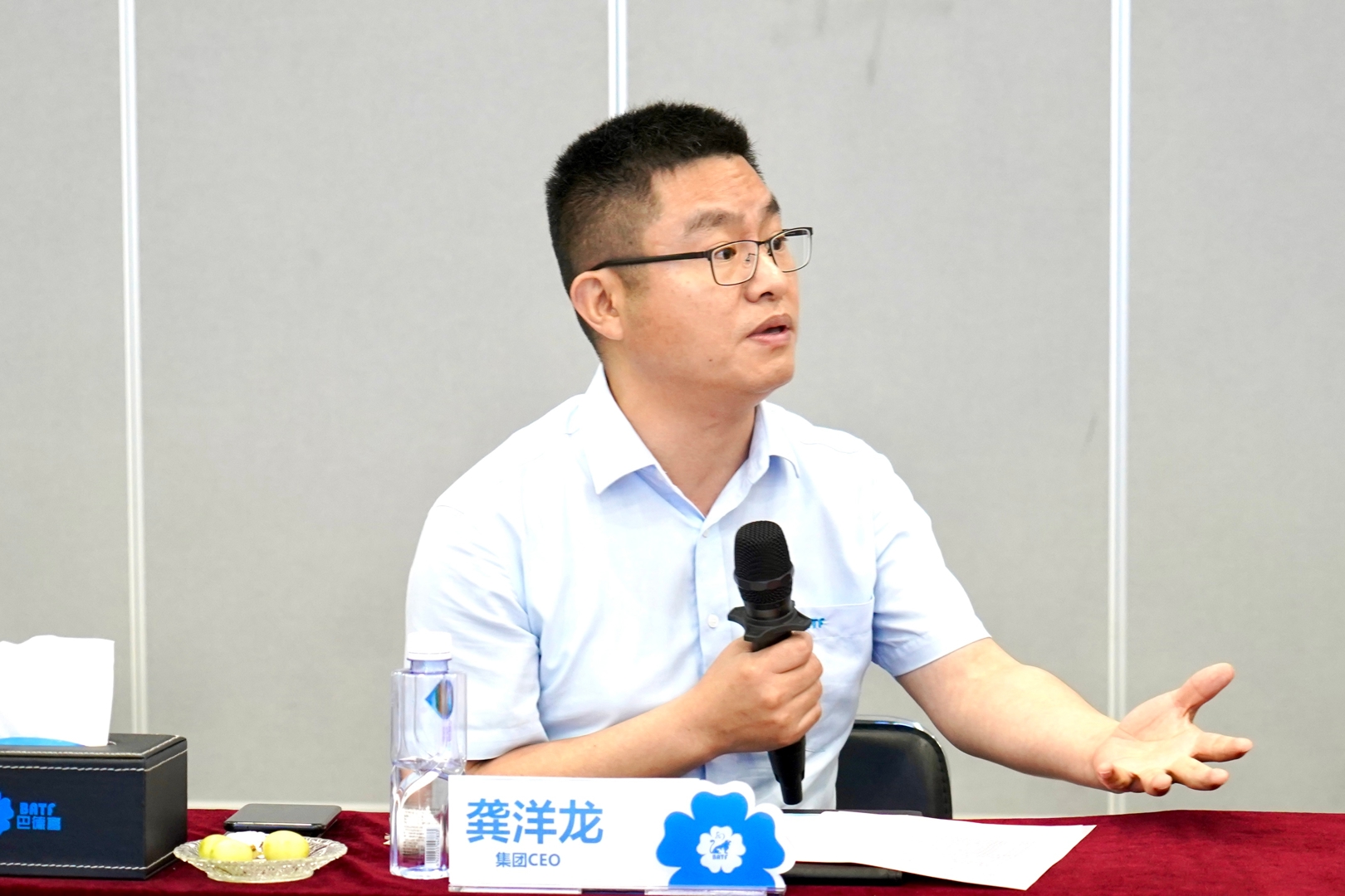 在会议交流环节,巴德富集团CEO龚洋龙指出,巴德富始终将创新研发与人才建设视为企业发展的核心引擎,多年来持续加大研发投入,加速布局新兴领域,积极构建多元业务矩阵。他表示,该项目正是巴德富践行创新驱动、拓展多元赛道的重要载体,公司将全力投入资源,加速创新成果落地转化。